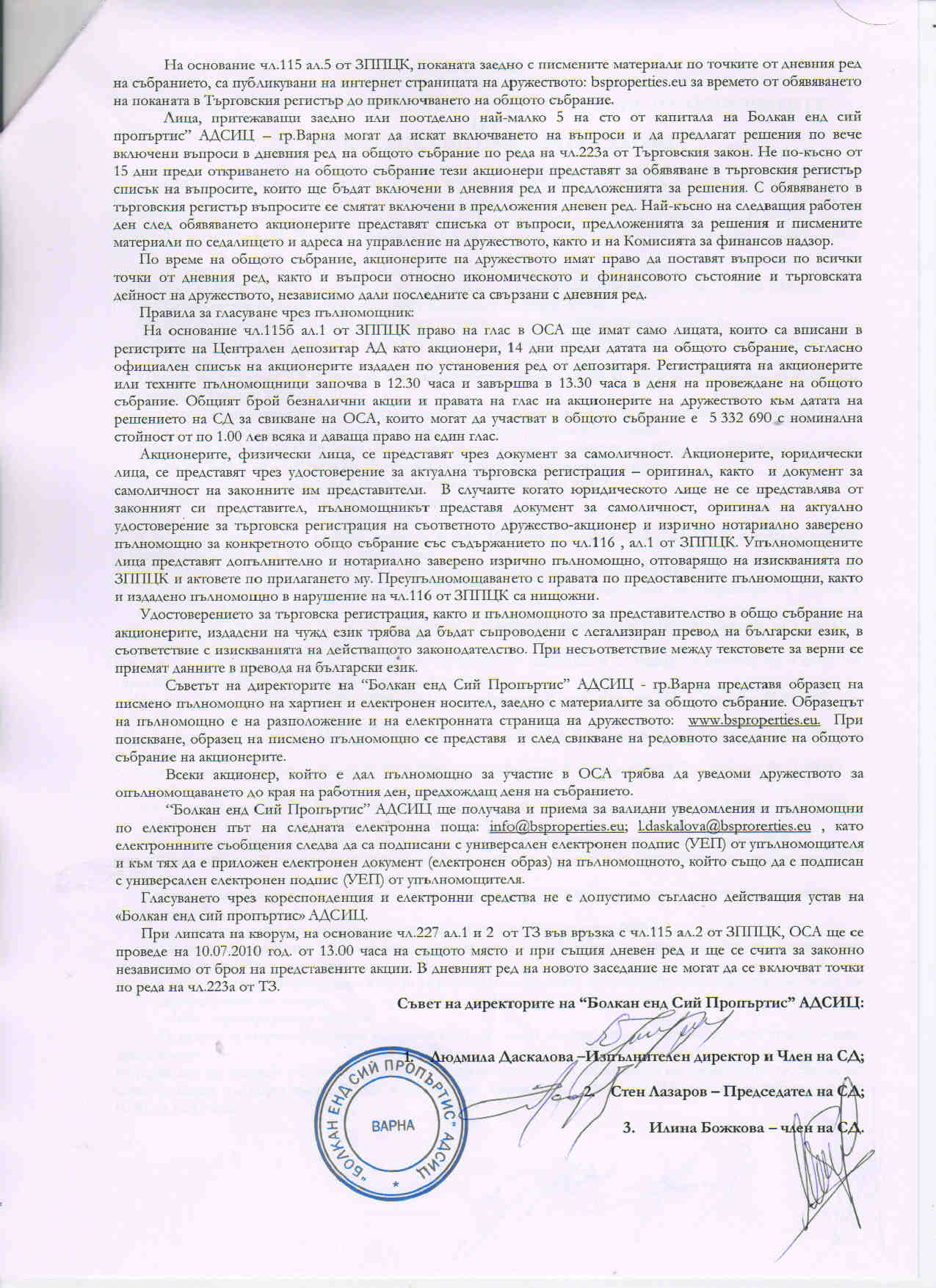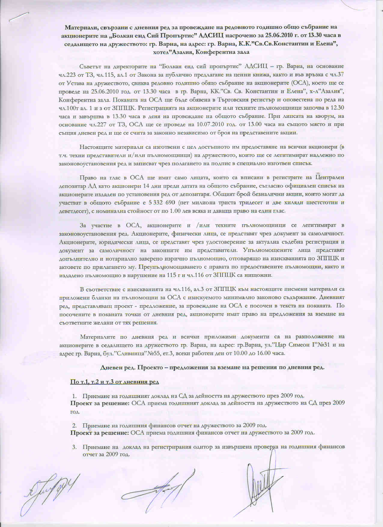 • Покана за свикване на РГОСА 25.06.2010 г.